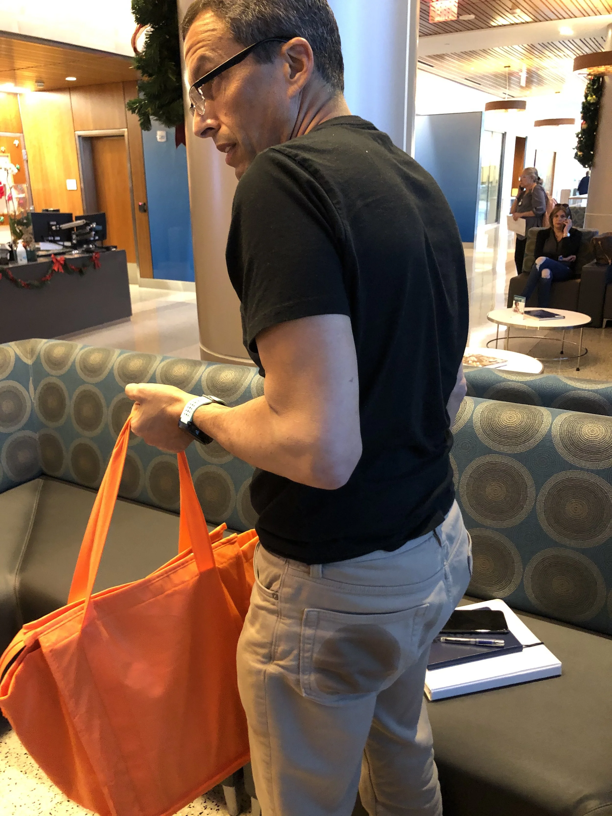When we finally got in to see the oncologist, she was amazed that Joel had all of my paperwork organized in a notebook and could immediately produce whatever documents she needed. I silently thanked God for Joel who was walking by my side through this journey — and even carrying my urine!