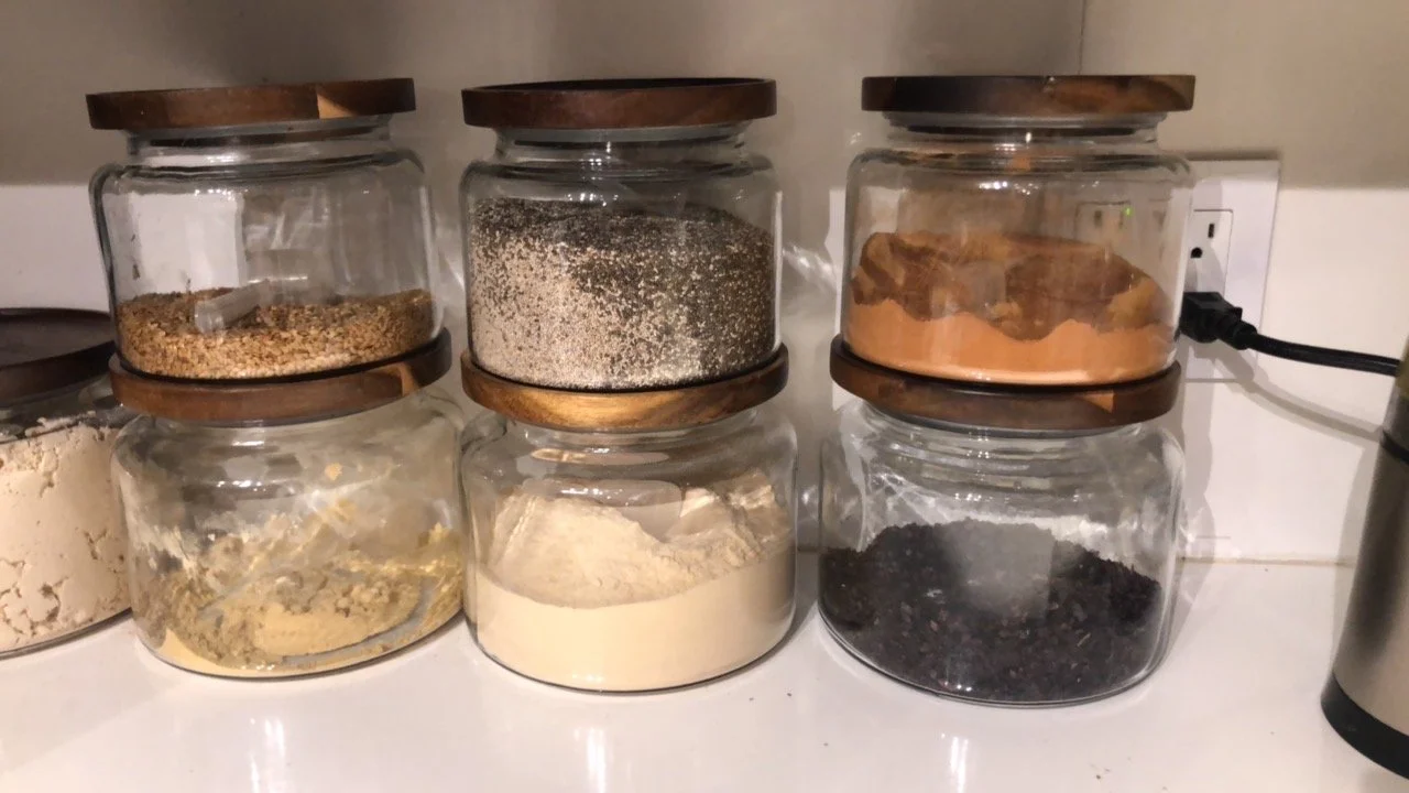 I moved to mostly glass dishes and storage containers. This is our smoothie station.